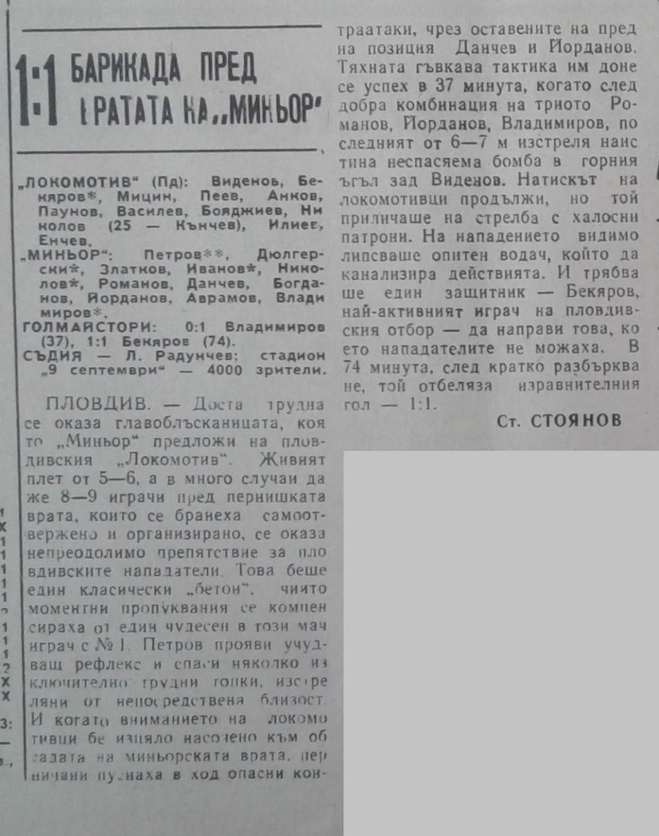 «Локомотив» Пловдив - «Минёр» Перник - 1:1