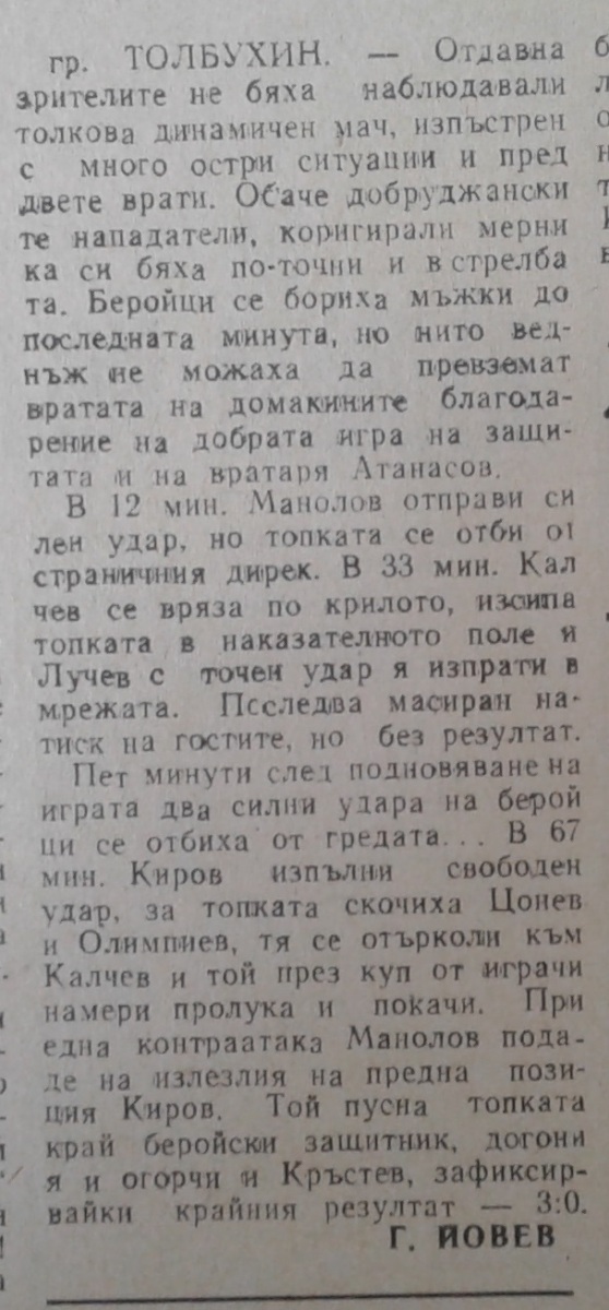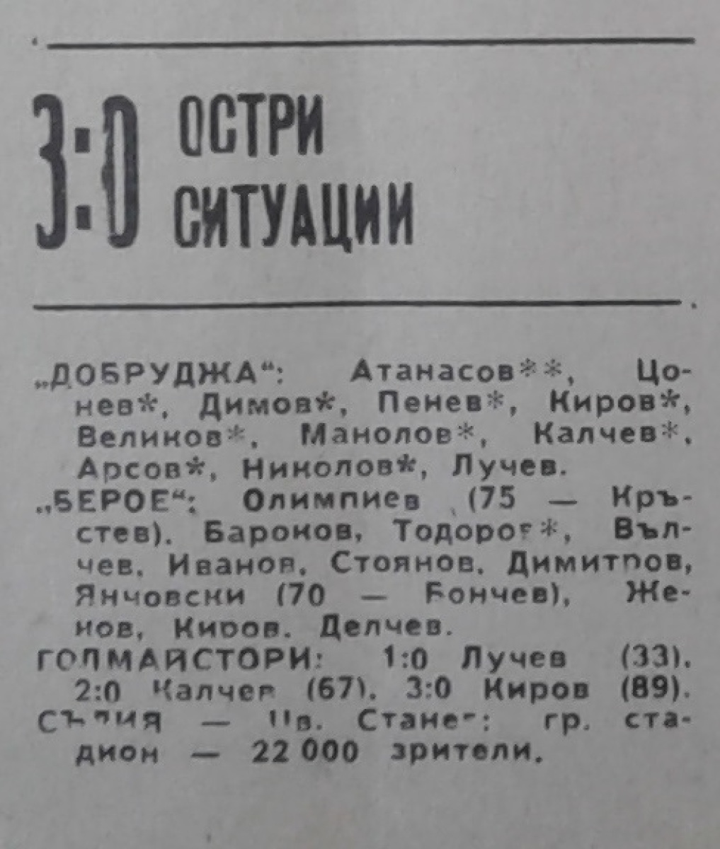 «Добруджа» Толбухин - «Берое» Стара-Загора - 3:0