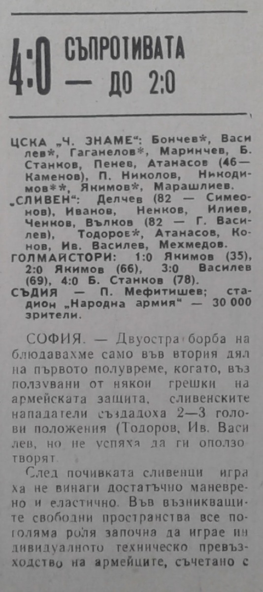 «ЦСКА Червено Знаме» София - «Сливен» Сливен - 4:0
