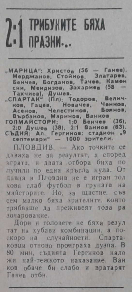 «Марица» Пловдив - «Спартак» Плевен - 2:1