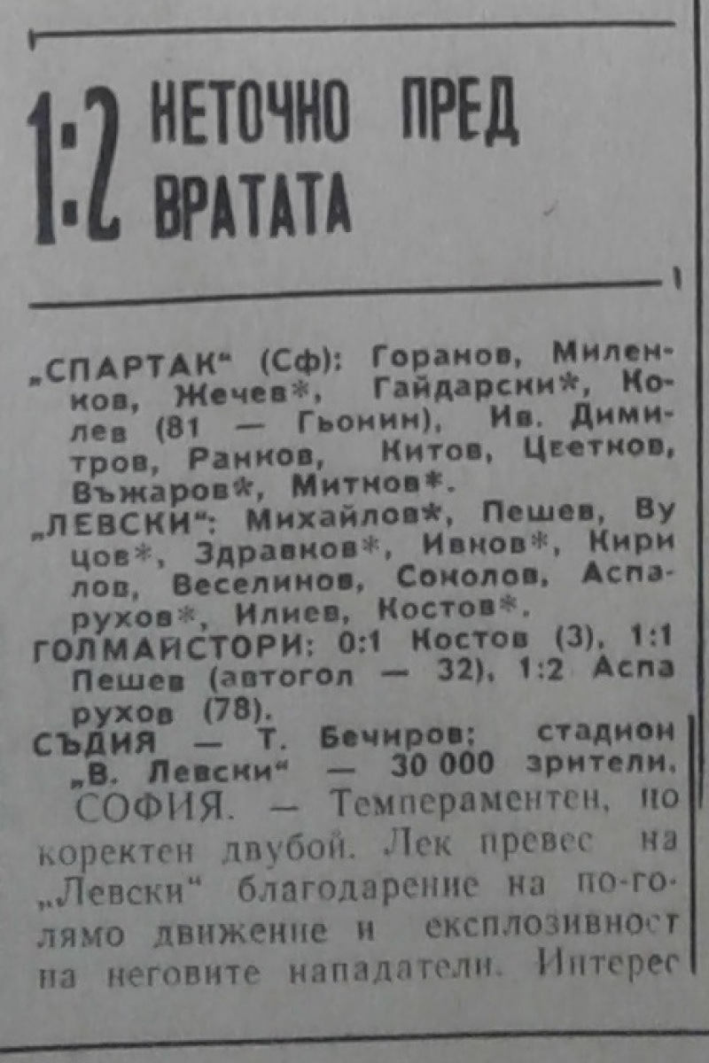 «Спартак» София - «Левски» София - 1:2
