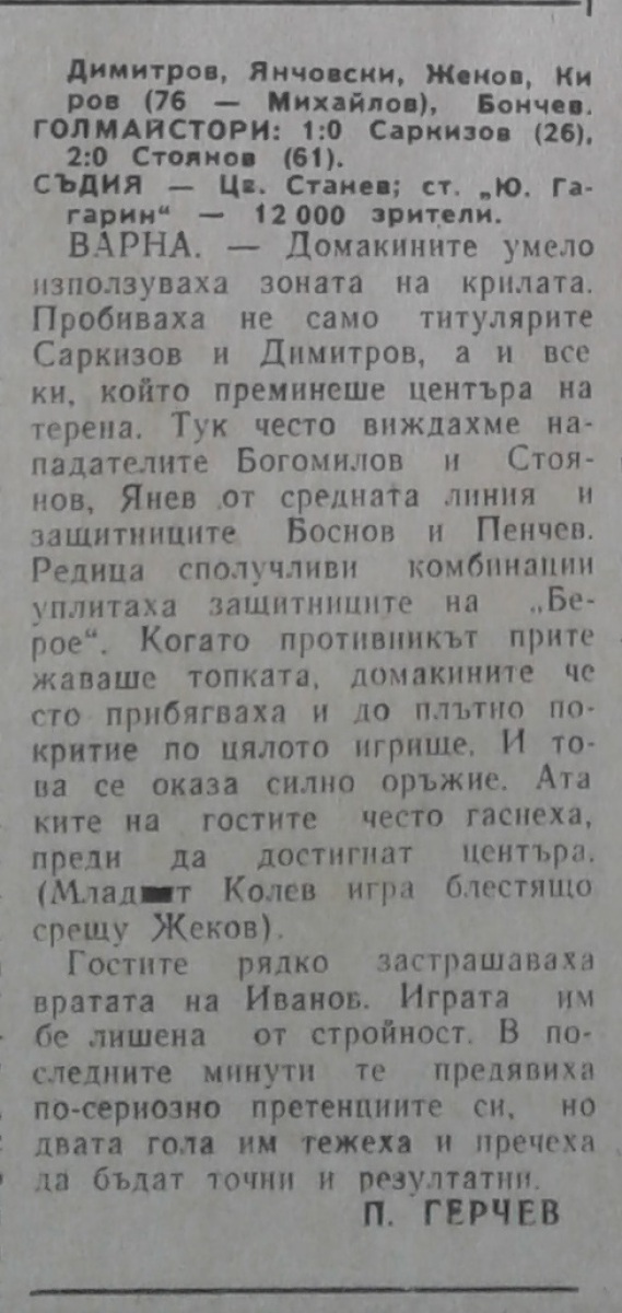 «Черно море» Варна - «Берое» Стара-Загора - 2:0