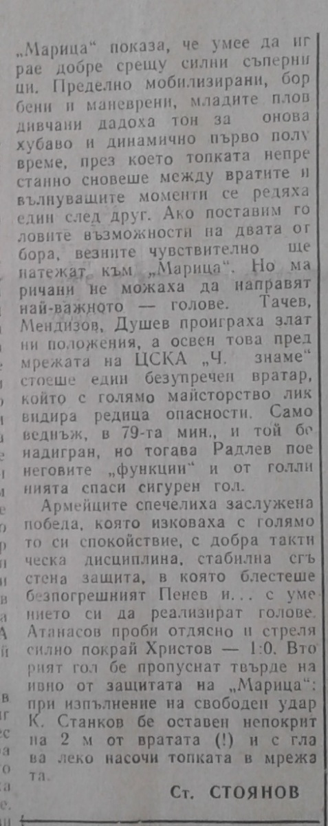 «Марица» Пловдив - «ЦСКА Червено Знаме» София - 0:2