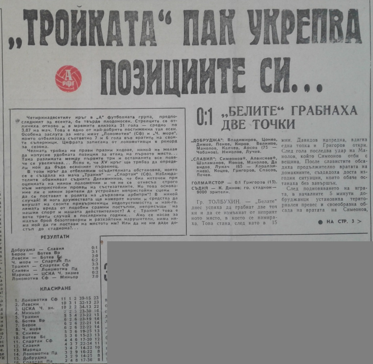 «Добруджа» Толбухин - «Славия» София - 0:1