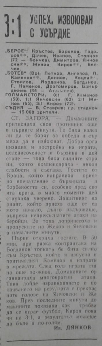 «Берое» Стара-Загора - «Ботев» Враца - 3:1