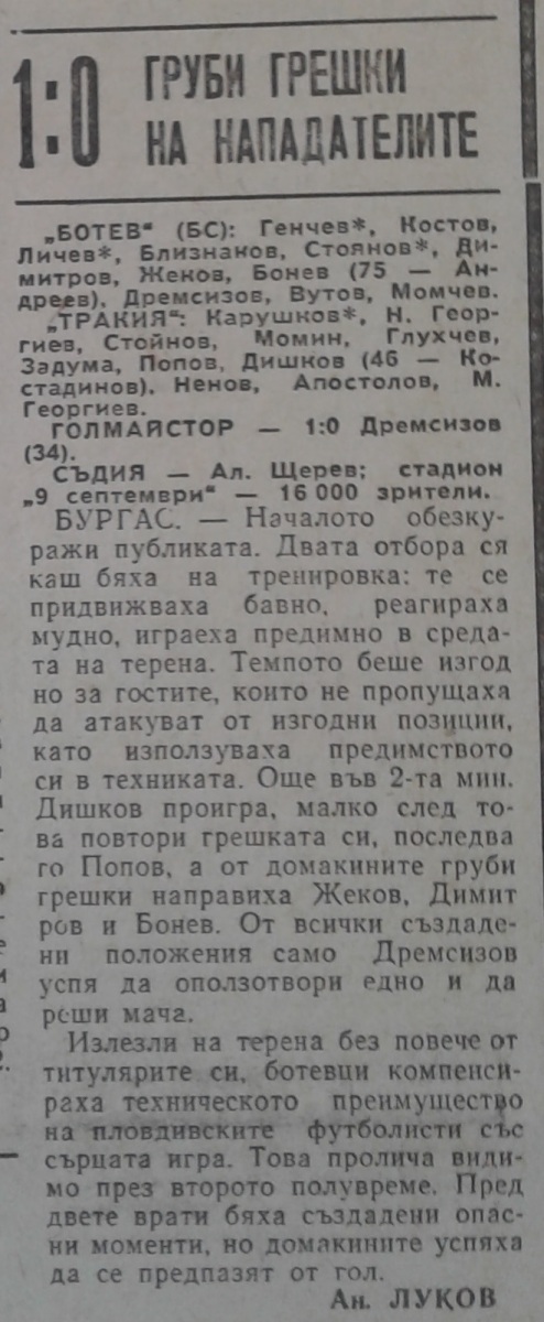 «Ботев» Бургас - «Тракия» Пловдив - 1:0
