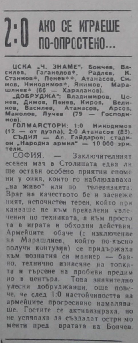 «ЦСКА Червено Знаме» София - «Добруджа» Толбухин - 2:0