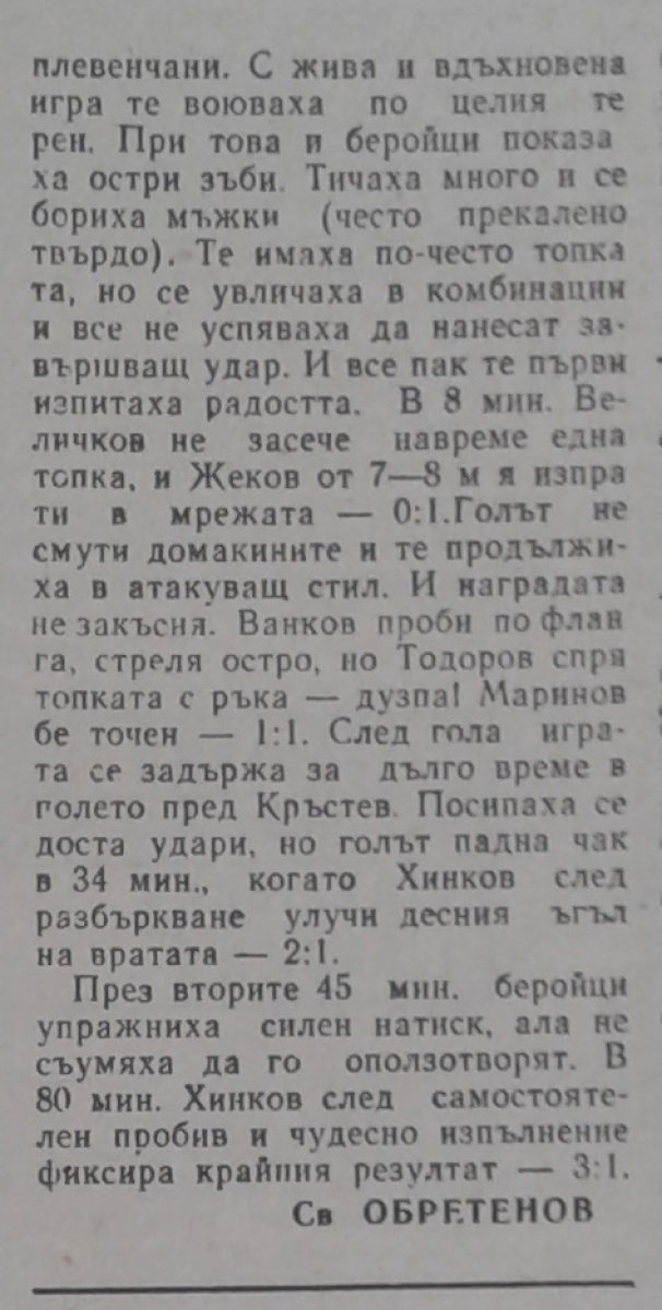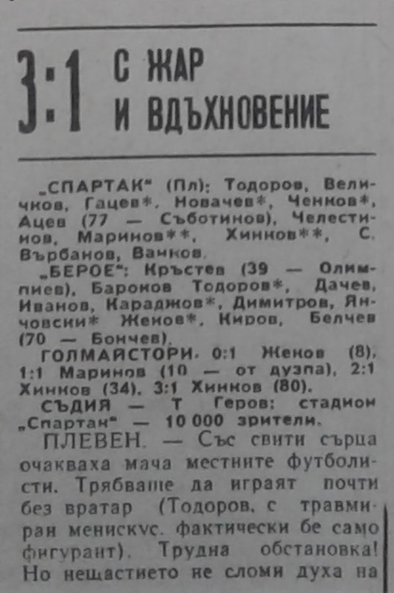 «Спартак» Плевен - «Берое» Стара-Загора - 3:1