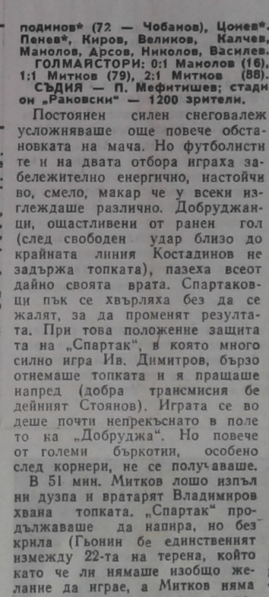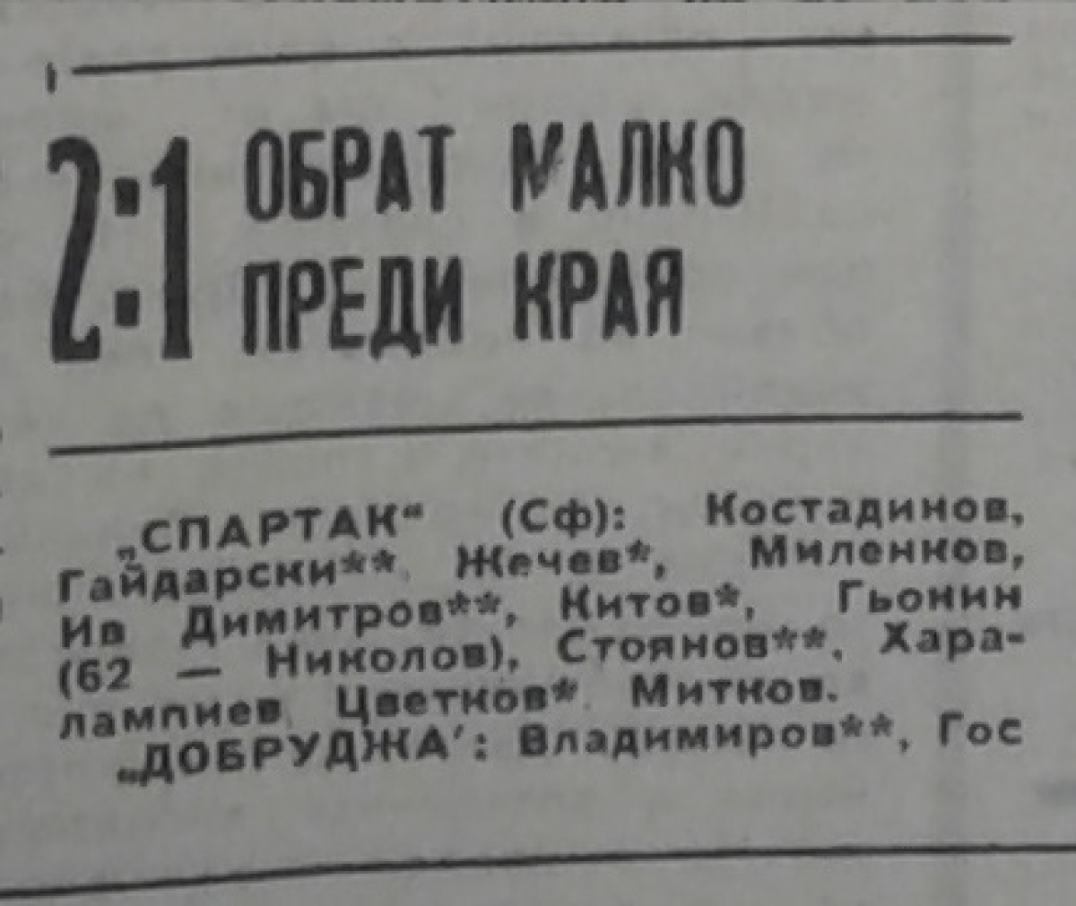 «Спартак» София - «Добруджа» Толбухин - 2:1