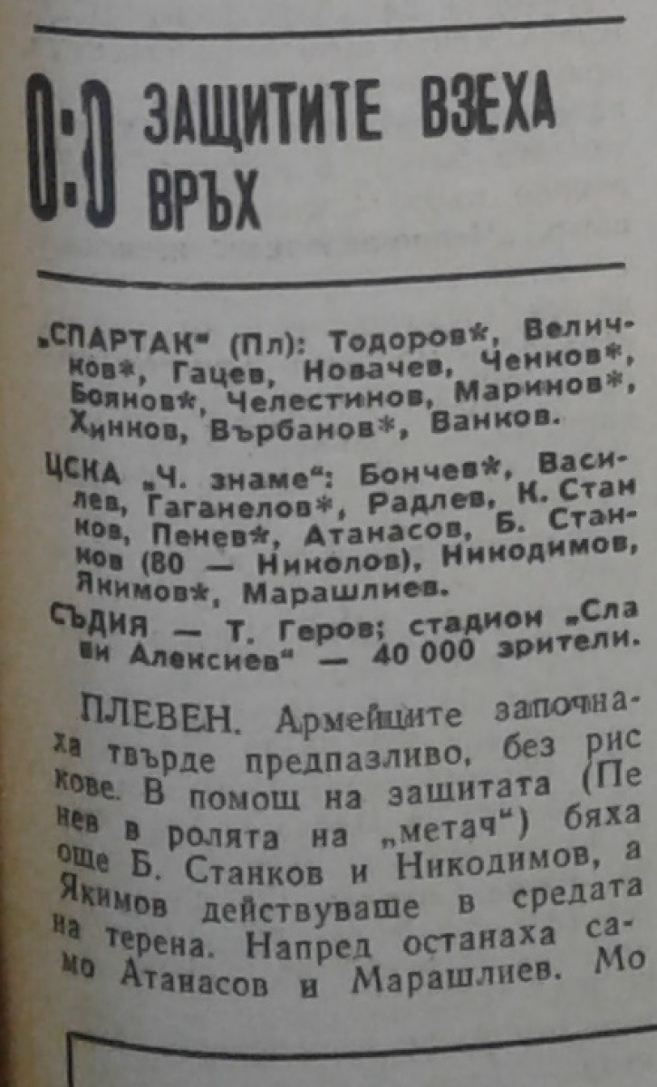 «Спартак» Плевен - «ЦСКА Септемврийско Знаме» София - 0:0
