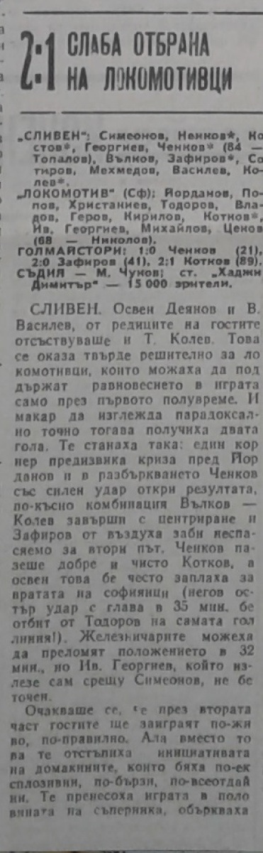 «Сливен» Сливен - «Локомотив» София - 2:1