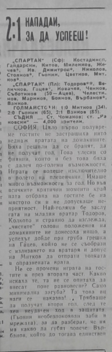 «Спартак» София - «Спартак» Плевен - 2:1