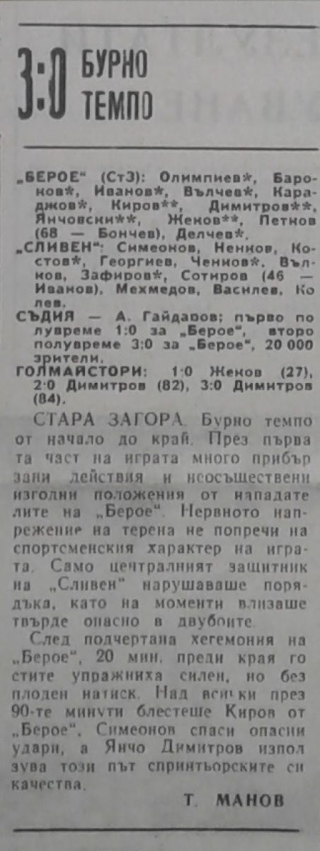 «Берое» Стара-Загора - «Сливен» Сливен - 3:0