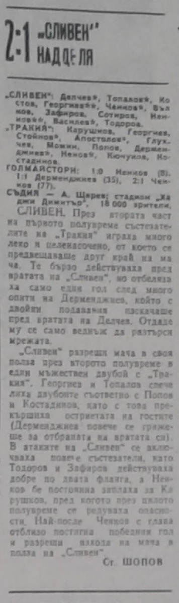 «Сливен» Сливен - «Тракия» Пловдив - 2:1