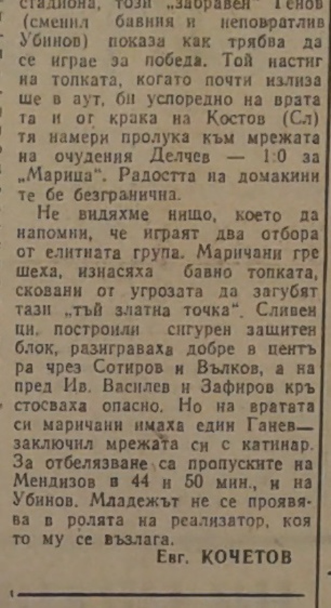 «Марица» Пловдив - «Сливен» Сливен - 1:0