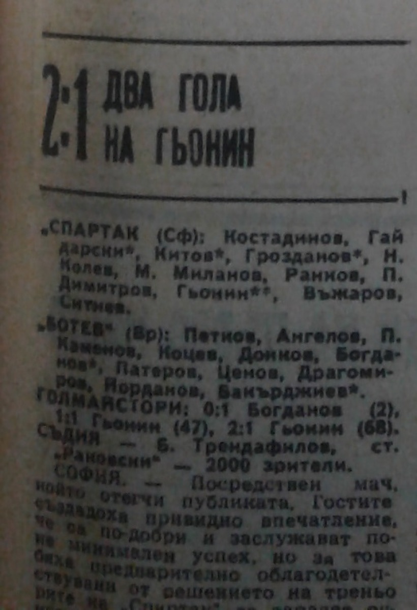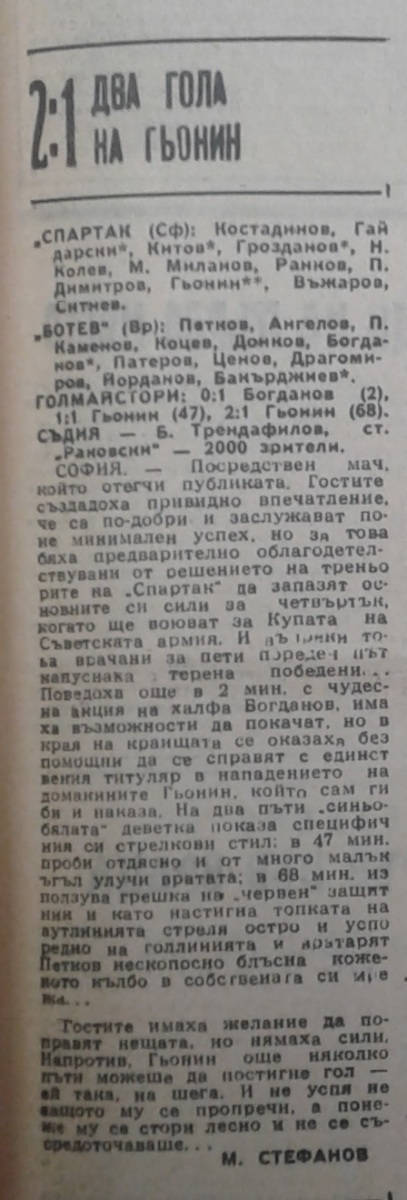 «Спартак» София - «Ботев» Враца - 2:1
