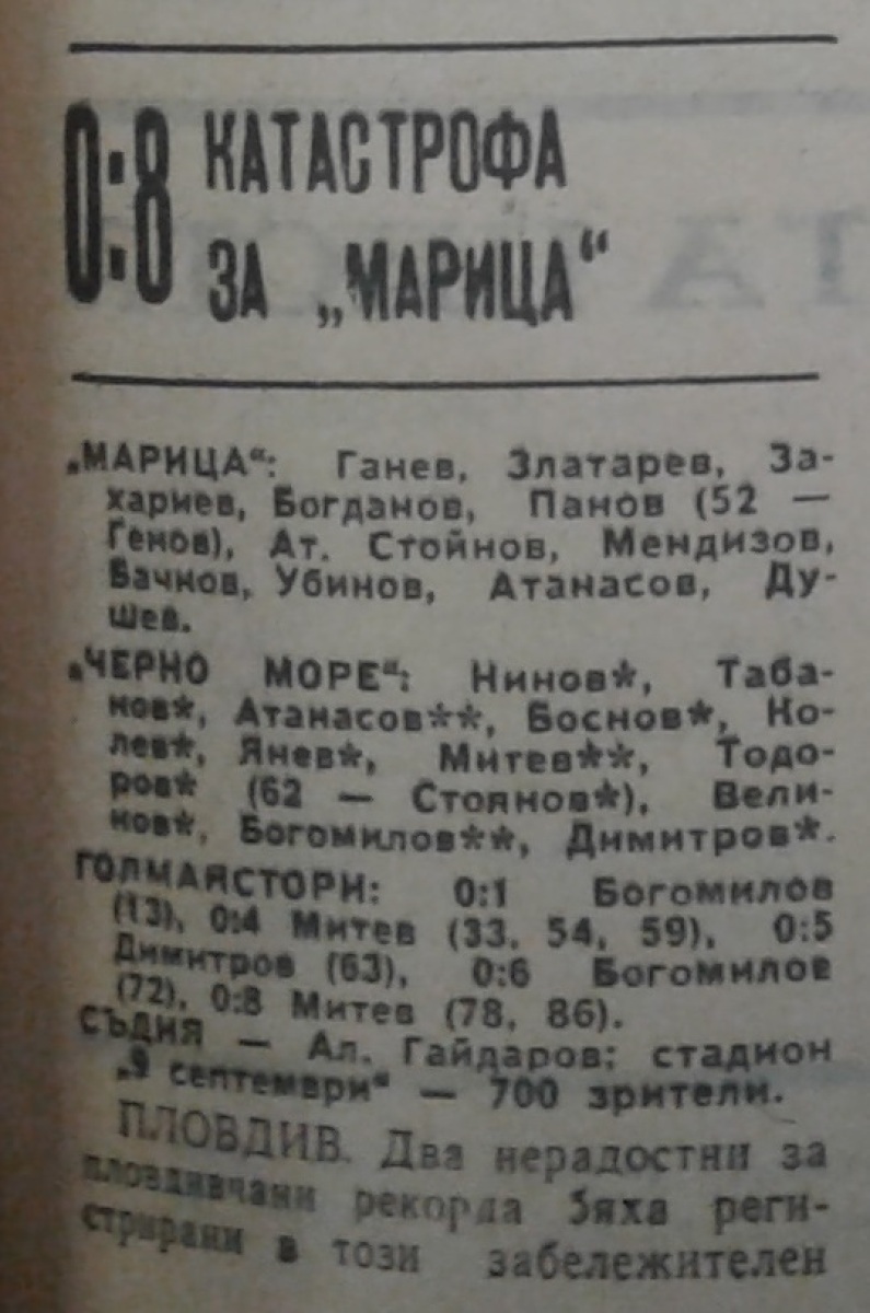«Марица» Пловдив - «Черно море» Варна - 0:8