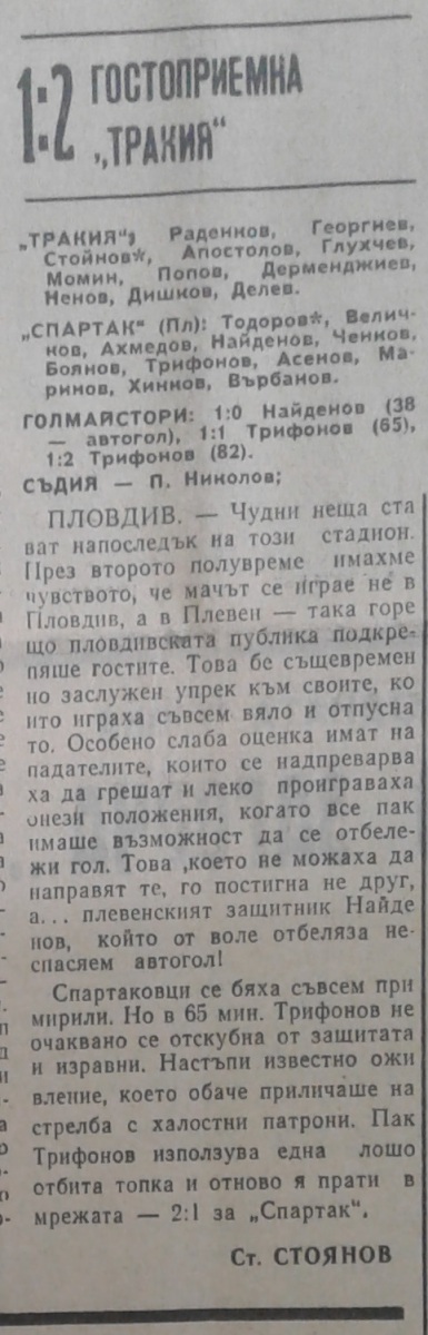 «Тракия» Пловдив - «Спартак» Плевен - 1:2