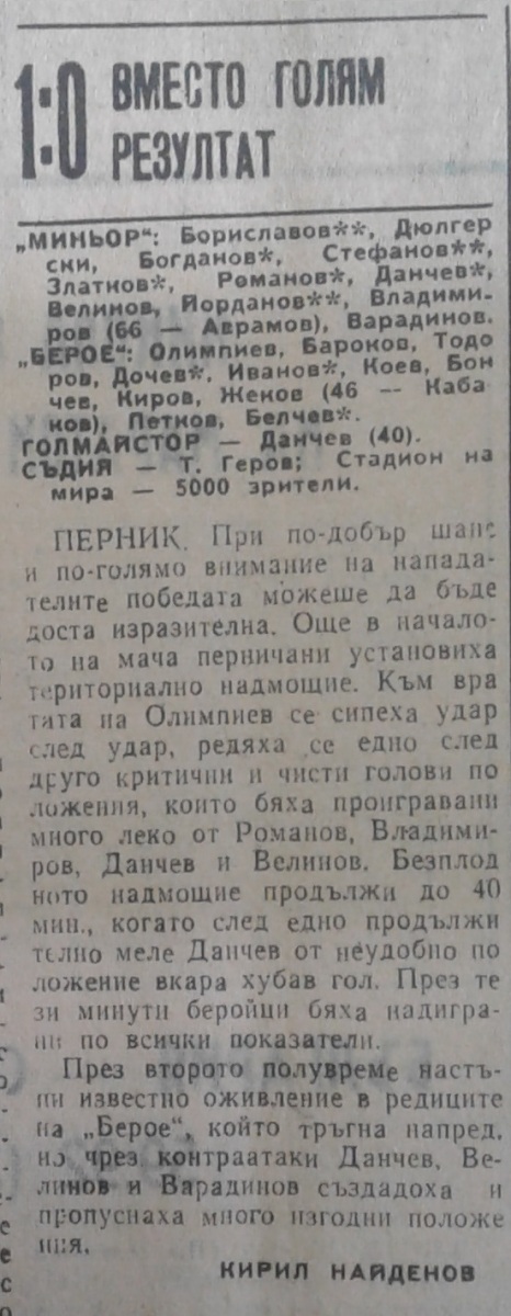 «Минёр» Перник - «Берое» Стара-Загора - 1:0