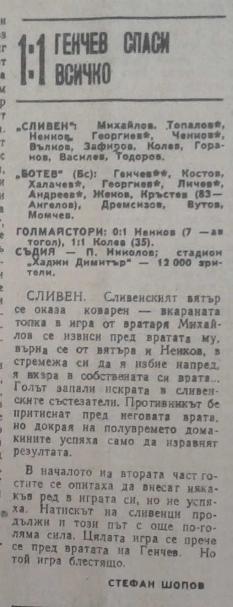 «Сливен» Сливен - «Ботев» Бургас - 1:1