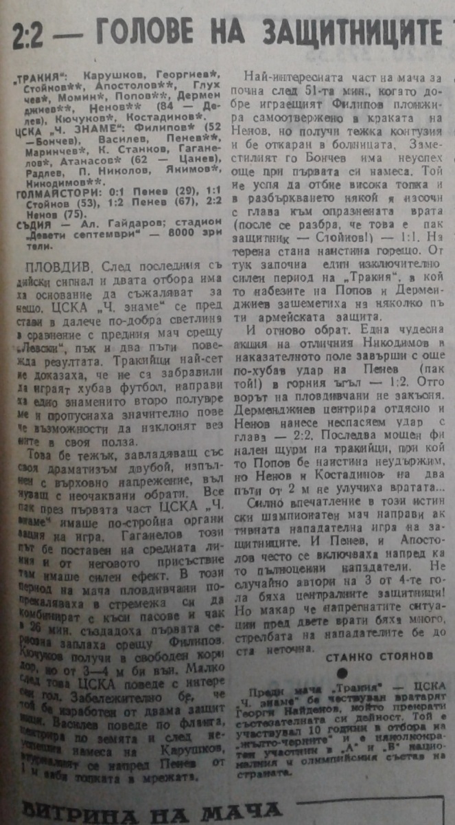 «Тракия» Пловдив - «ЦСКА Септемврийско Знаме» София - 2:2