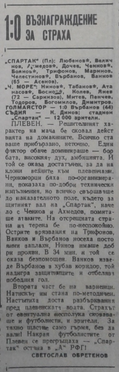 «Спартак» Плевен - «Черно море» Варна - 1:0