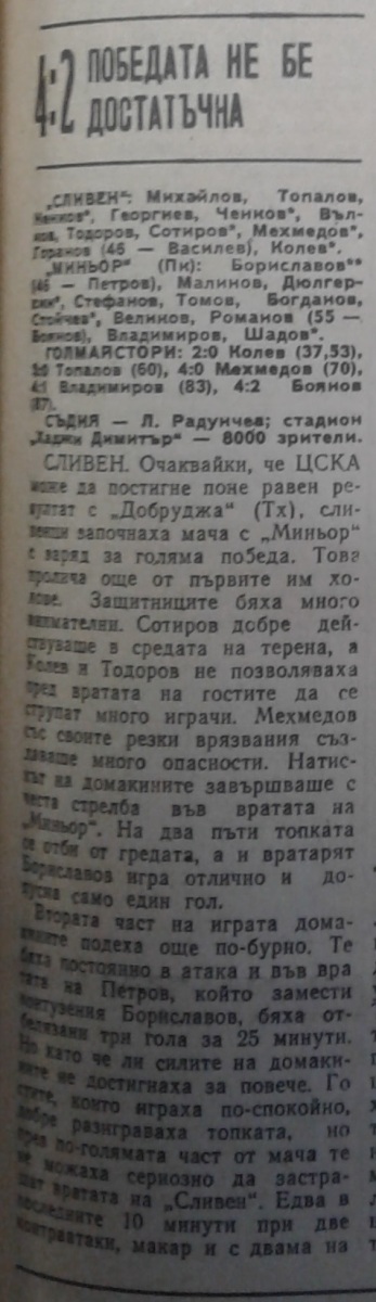 «Сливен» Сливен - «Минёр» Перник - 4:2
