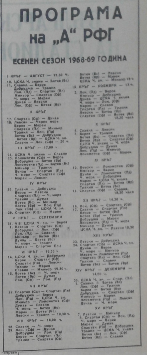 Чемпионат Болгарии 1968/69. Группа А