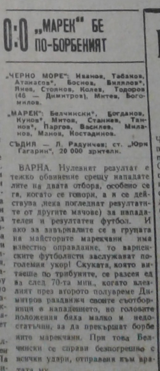«Черно море» Варна - «Марек» Станке-Димитров - 0:0