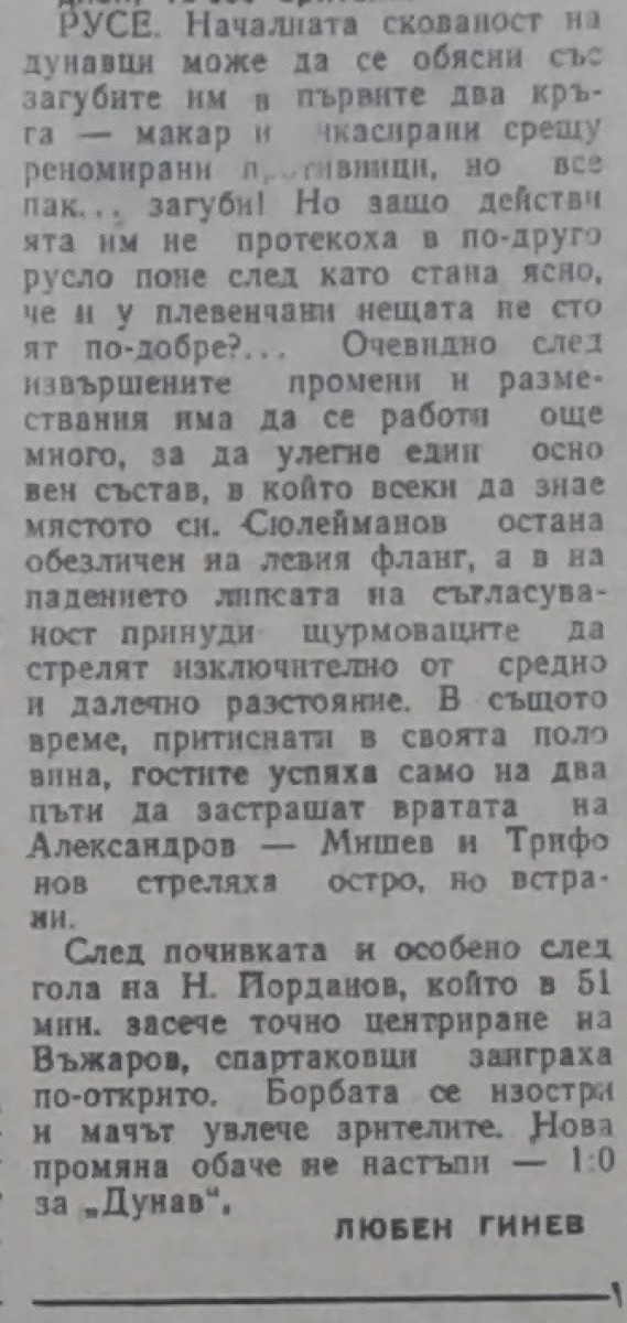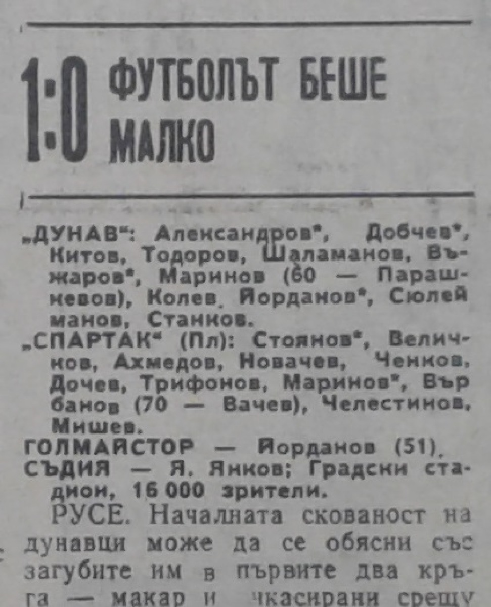 «Дунав» Русе - «Спартак» Плевен - 1:0