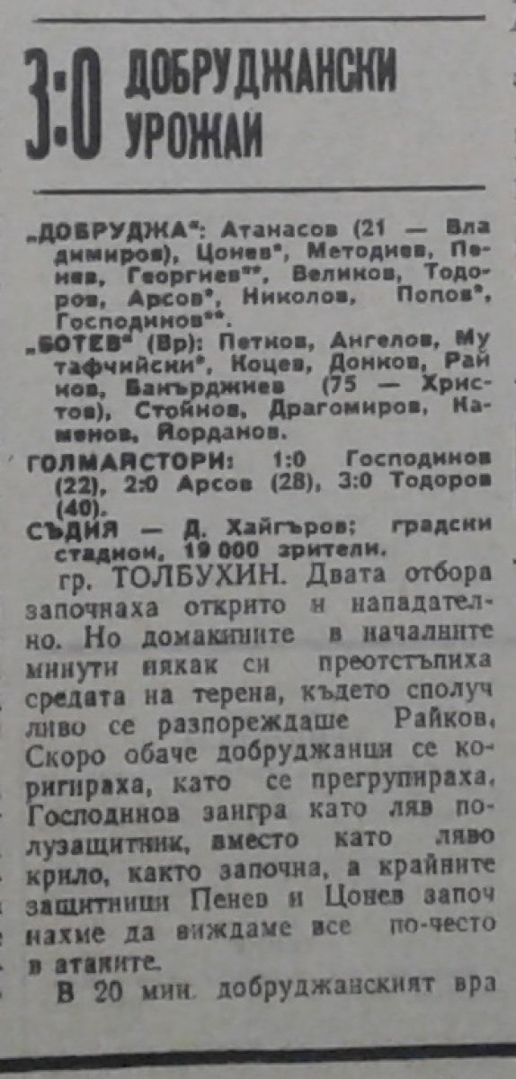 «Добруджа» Толбухин - «Ботев» Враца - 3:0