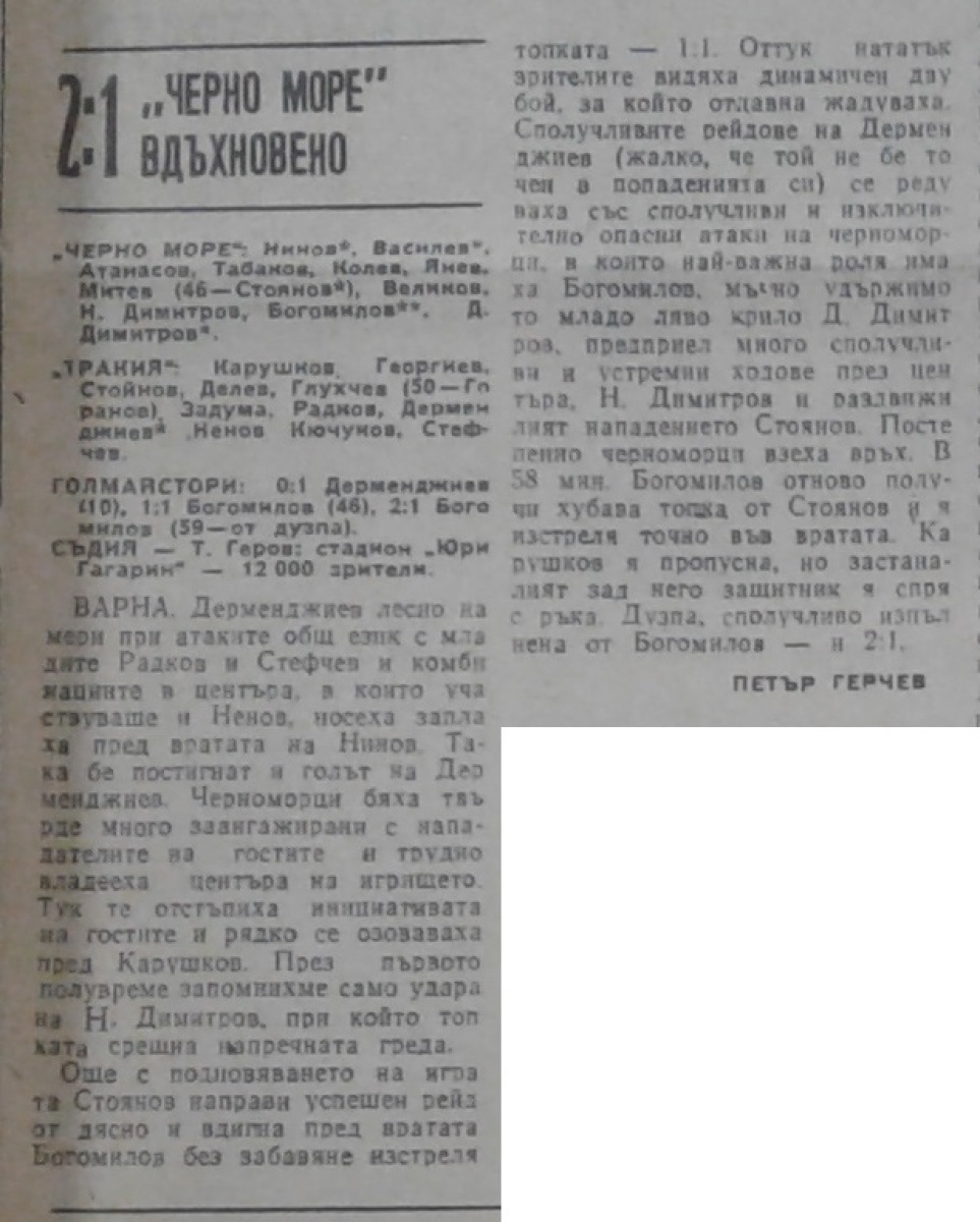 «Черно море» Варна - «Тракия» Пловдив - 2:1