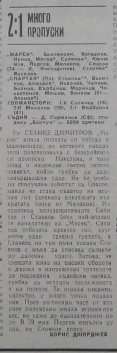 «Марек» Станке-Димитров - «Спартак» Плевен - 2:1
