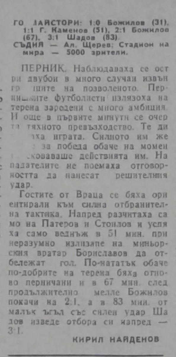 «Минёр» Перник - «Ботев» Враца - 3:1