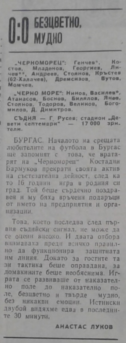 «Черноморец» Бургас - «Черно море» Варна - 0:0