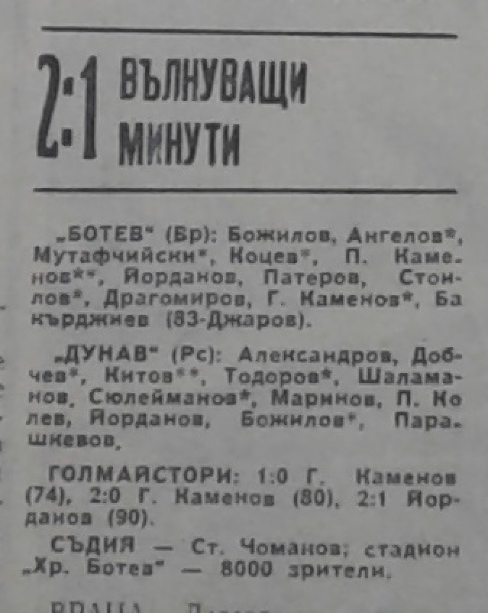 «Ботев» Враца - «Дунав» Русе - 2:1