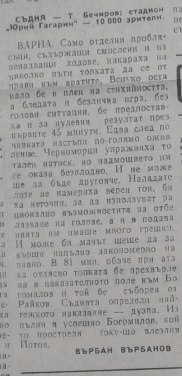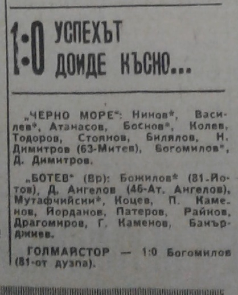 «Черно море» Варна - «Ботев» Враца - 1:0