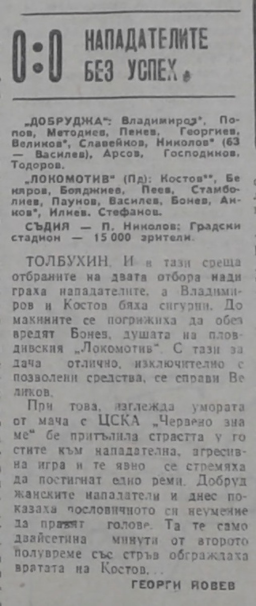 «Добруджа» Толбухин - «Локомотив» Пловдив - 0:0