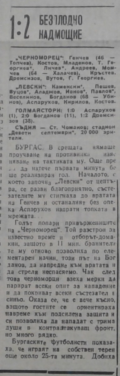 «Черноморец» Бургас - «Левски» София - 1:2