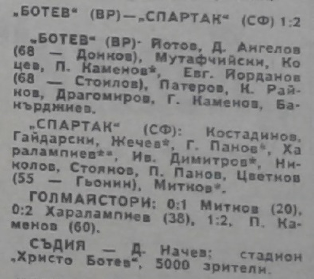 «Ботев» Враца - «Спартак» София - 1:2