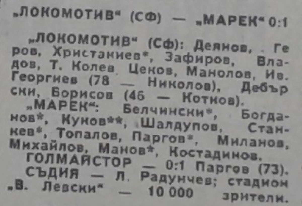 «Локомотив» София - «Марек» Станке-Димитров - 0:1