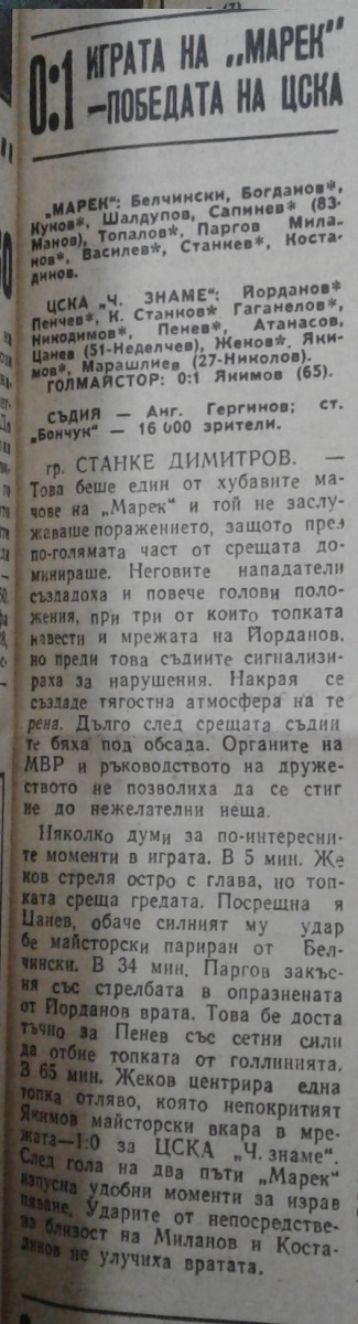 «Марек» Станке-Димитров - «ЦСКА Септемврийско Знаме» София - 0:1