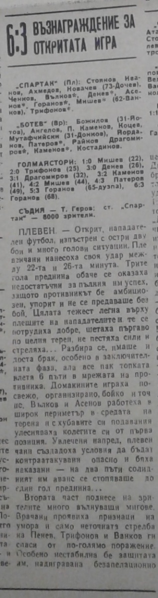 «Спартак» Плевен - «Ботев» Враца - 6:3