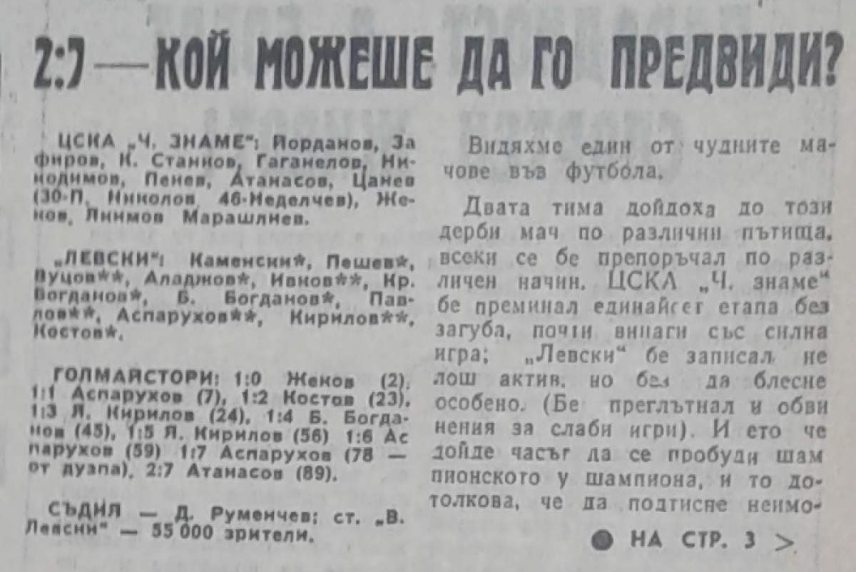 «ЦСКА Септемврийско Знаме» София - «Левски» София - 2:7