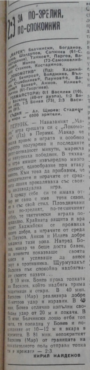 «Марек» Станке-Димитров - «Локомотив» Пловдив - 2:3