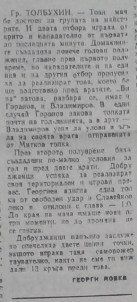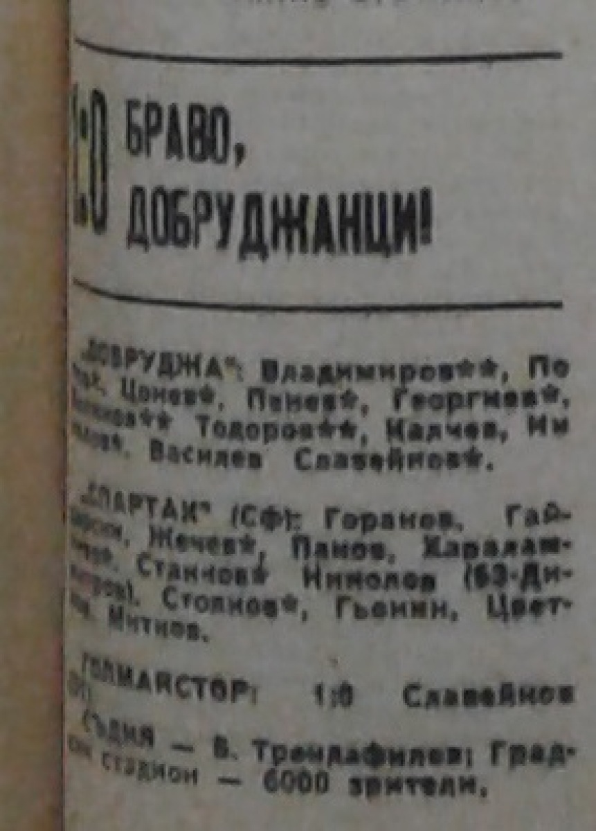 «Добруджа» Толбухин - «Спартак» София - 1:0