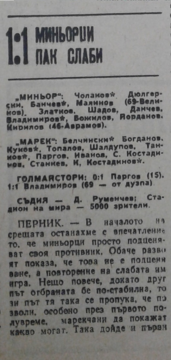 «Минёр» Перник - «Марек» Станке-Димитров - 1:1