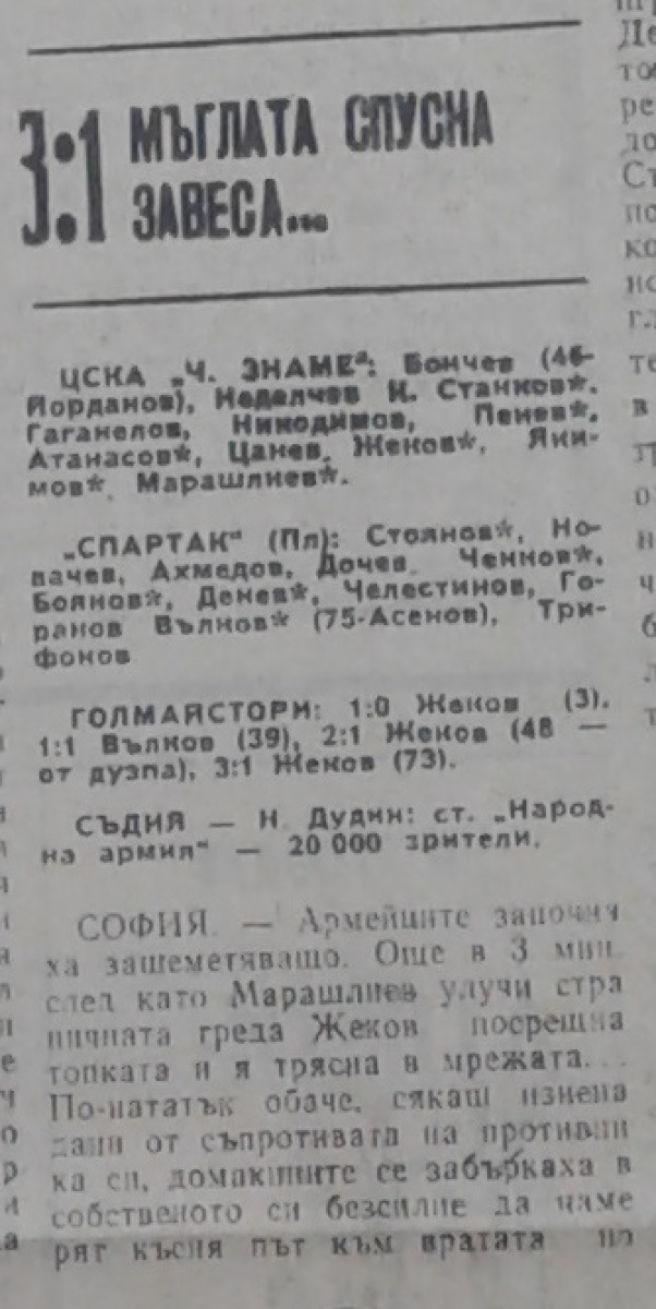 «ЦСКА Септемврийско Знаме» София - «Спартак» Плевен - 3:1