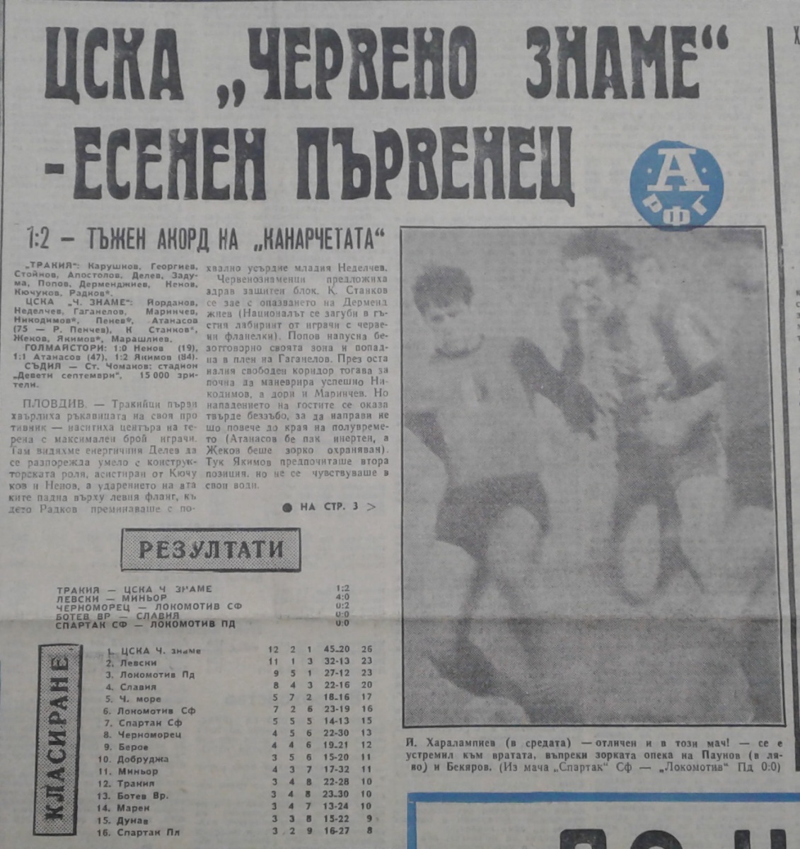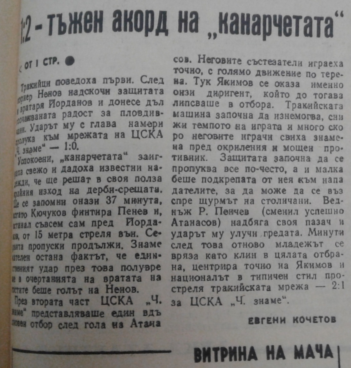 «Тракия» Пловдив - «ЦСКА Септемврийско Знаме» София - 1:2