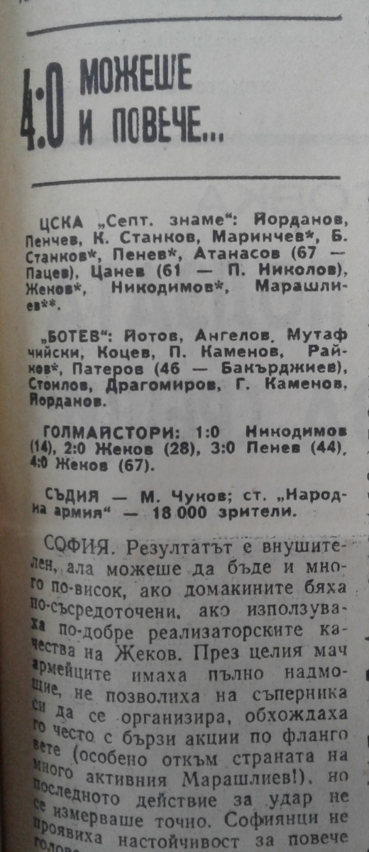 «ЦСКА Септемврийско Знаме» София - «Ботев» Враца - 4:0